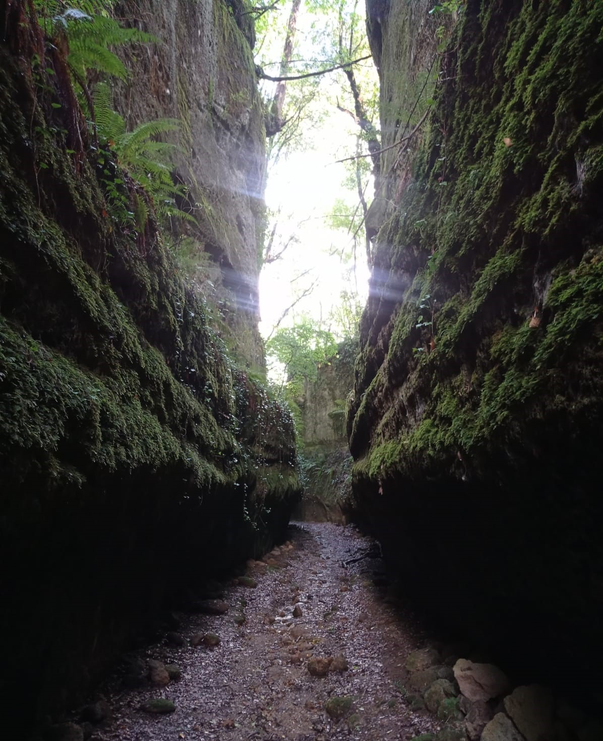 Il vasto pianoro tufaceo sul quale poi nacque la città ducale risulta strategicamente e naturalmente protetto dalle ripide pareti rocciose che danno sui fossi Olpeta e delle Monache, che contribuirono non poco a segnare profondamente la visita del Dennis, il quale riportò angosciato che “in nessun luogo il bosco è più buio e denso, in nessun luogo i dirupi sono più neri e minacciosi … in nessuna località il passato oscura lo spirito con più profondo terrore”.