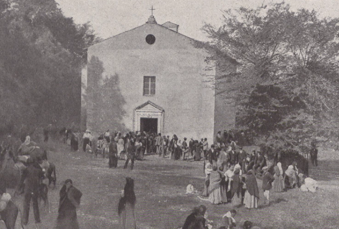 Foto d'epoca del pellegrinaggio a Castro partendo da Pitigliano, dal Touring Club Italiano. 1916.